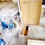 Now that that has been removed, along with all the bricks in the bathroom wall (eastern part of north wall), the corner of the house is considerably lighter. I reckon to weight to be somewhere around 1000 lbs (450kg). Because of this, we are now able to remove the old, rotten beam install the beam in that corner. It spans 10′ (3m) and will have three teleposts.