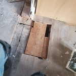 It has been a sore spot in this house for ages. The NE corner of the house has been cleared of all the concrete they poured. It looks like they only did it as a stop-gap measure to prevent further house slumping. It didn’t work! Instead, this giant chunk of concrete, weighing probably 400 lbs (180kg), was being held up by the house.