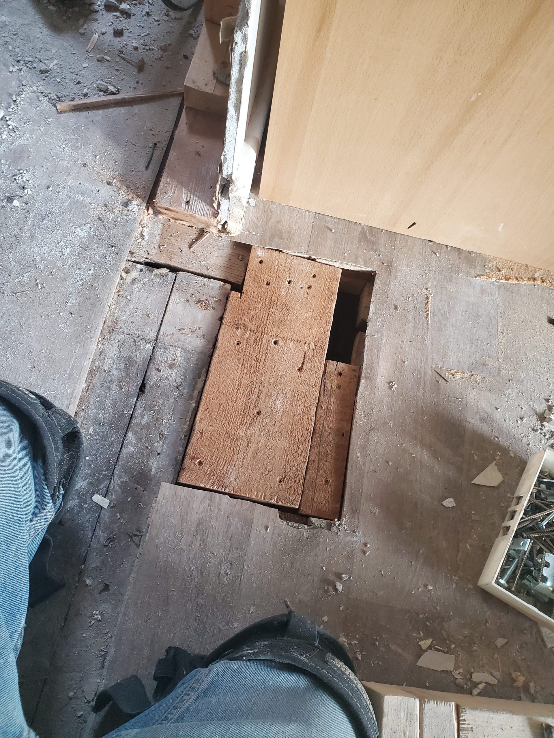 We rebuilt this upper landing several months back without knowing we would move the staircase. Now I have to undo all this work. Such is life!